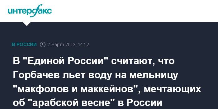 В "Единой России" считают, что Горбачев льет воду на мельницу "макфолов и маккейнов", мечтающих об "арабской весне" в России