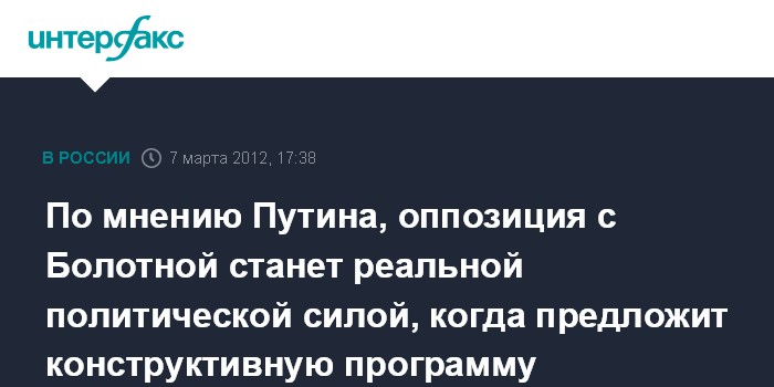 По мнению Путина, оппозиция с Болотной станет реальной политической силой, когда предложит конструктивную программу