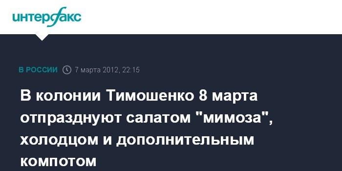 В колонии Тимошенко 8 марта отпразднуют салатом "мимоза", холодцом и дополнительным компотом