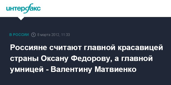 Россияне считают главной красавицей страны Оксану Федорову, а главной умницей - Валентину Матвиенко