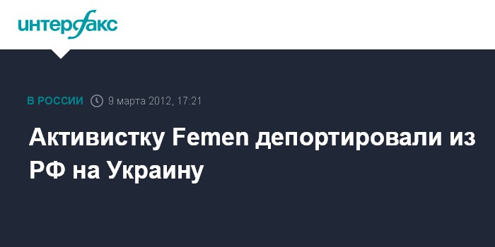 Москва. 9 марта. INTERFAX.RU - Одна из активистов украинской группы Femen, задержанная за хулиганство 4 марта в Москве на избирательном участке в Российской академии наук, в пятницу выслана в Киев.