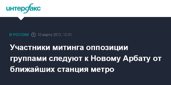Москва. 19 марта. INTERFAX.RU – Участники санкционированного митинга оппозиции "За честные выборы", начало которого запланировано на 13:00, группами собираются у ближайших к Новому Арбату станций метро и следуют к территории, отведенной для акции.