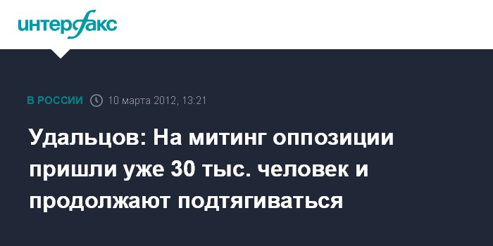 Москва. 10 марта. INTERFAX.RU - Не менее 30 тысяч человек собралось в центре Москвы на митинг оппозиции "За честные выборы", заявил "Интерфаксу" один из организаторов митинга, Сергей Удальцов.