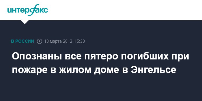Саратов. 10 марта. INTERFAX.RU - Установлены личности погибших во время пожара в пятиэтажном жилом доме в городе Энгельсе Саратовской области, сообщила агентству "Интерфакс-Поволжье" министр здравоохранения региона Лариса Твердохлеб.