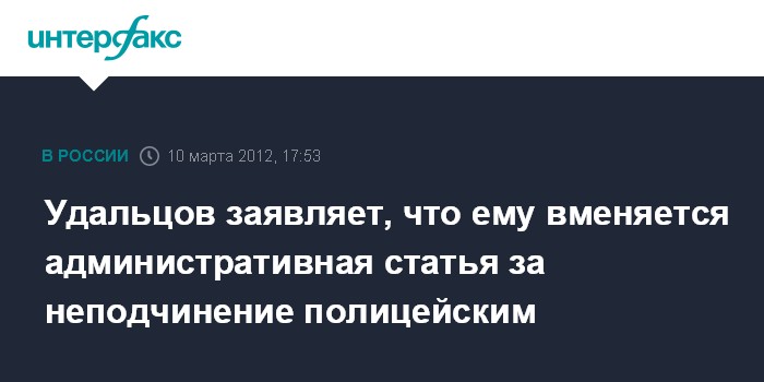 "Сейчас полиция оформляет материал по ст. 19.3 КоАП РФ (Невыполнение требования сотрудников полиции)", - сказал Удальцов "Интерфаксу" по телефону из ОМВД "Арбат", куда ранее был доставлен с Арбатской площади.