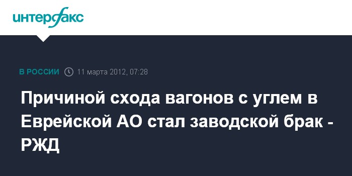 Причиной схода вагонов с углем в Еврейской АО стал заводской брак - РЖД