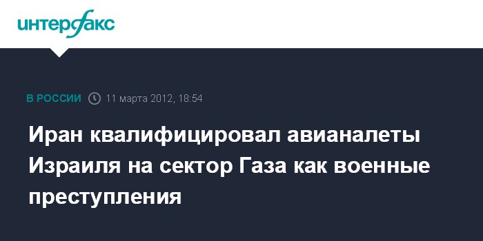 Тегеран. 11 марта. INTERFAX.RU - Власти Ирана назвали авиаудары ВВС Израиля по сектору Газа военными преступлениями против палестинского народа, говорится в заявлении МИД Исламской республики.