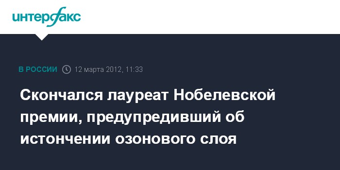 Скончался лауреат Нобелевской премии, предупредивший об истончении озонового слоя