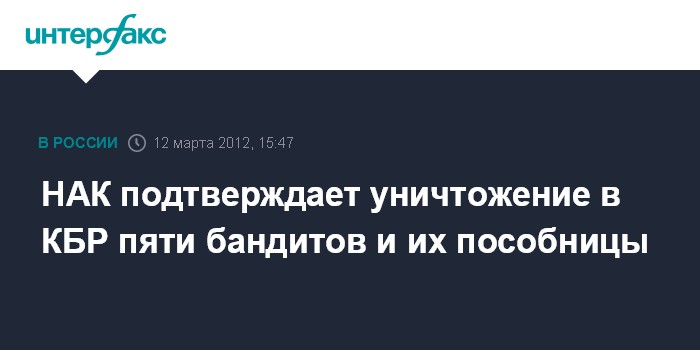 Москва. 12 марта. INTERFAX.RU - Национальный антитеррористический комитет подтверждает информацию об уничтожении пятерых боевиков и их пособницы в ходе спецоперации в Чегемском районе Кабардино-Балкарии.