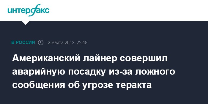 Американский лайнер совершил аварийную посадку из-за ложного сообщения об угрозе теракта
