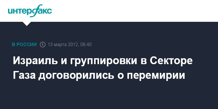 Лондон. 13 марта. INTERFAX.RU - Согласно сообщениям, поступающим с Ближнего Востока, между израильтянами и палестинцами Cектора Газа после четырех дней обмена взаимными ударами было заключено перемирие.