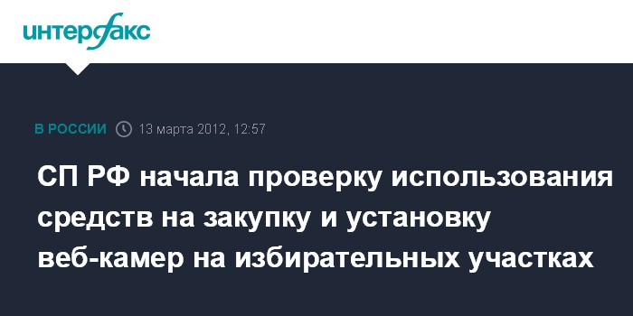 СП РФ начала проверку использования средств на закупку и установку веб-камер на избирательных участках