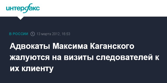 Москва. 13 марта. INTERFAX.RU- Защита бывшего сотрудника МВД Максима Каганского, фигуранта громкого дела о коррупции в ведомстве, просит руководство СКР оградить клиента от частых визитов следователей для бесед.