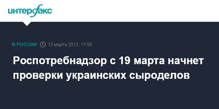 По его словам, Роспотребнадзор сообщил украинской стороне о намерении с 19 по 21 марта проинспектировать "Гадячсыр", а с 26 по 30 марта - "Менский сыр" (ЧП "Прометей" - ИФ) и "Пирятинский сырзавод".