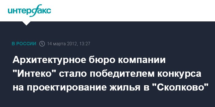 Москва. 14 марта. INTERFAX.RU - Архитектурное бюро "БРТ РУС", входящее в группу компаний "Интеко", стало победителем конкурса на проектирование жилья в районе "Технопарк" Индустриального центра Сколково, сообщается в пресс-релизе группы.