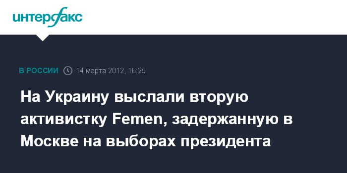9 марта из России выслали первую участницу группы Femen Ирину Фомину, которая была задержана на избирательном участке на Ленинском проспекте, где голосовал премьер Владимир Путин.