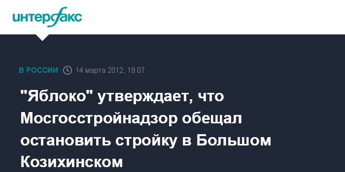 Москва. 14 марта. INTERFAX.RU - Мосгосстройнадзор даст предписание остановить строительные работы в Большом Козихинском переулке, утверждают в "Яблоке".