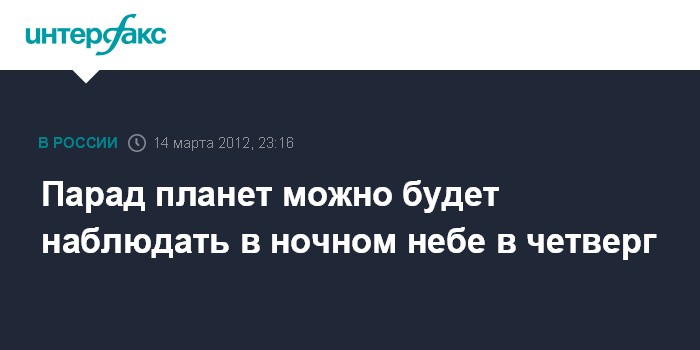 Санкт-Петербург. 14 марта. INTERFAX.RU - Венера и Юпитер в четверг выстроятся в линию и создадут мини-парад планет, сообщил "Интерфаксу" старший научный сотрудник Пулковской астрономической обсерватории РАН Сергей Смирнов.