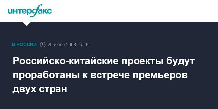 Российско-китайские проекты будут проработаны к встрече премьеров двух стран