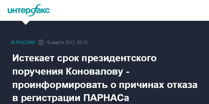 Истекает срок президентского поручения Коновалову - проинформировать о причинах отказа в регистрации ПАРНАСа
