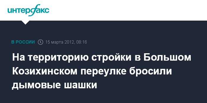 Москва. 15 марта. INTERFAX.RU - Строительную площадку в Большом Козихинском переулке забросали дымовыми шашками, сообщил "Интерфаксу" источник в правоохранительных органах.