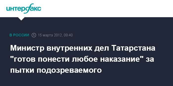 Министр внутренних дел Татарстана "готов понести любое наказание" за пытки подозреваемого