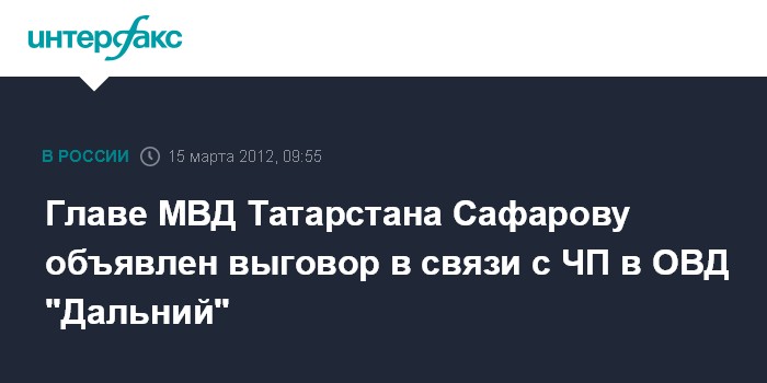 Главе МВД Татарстана Сафарову объявлен выговор в связи с ЧП в ОВД "Дальний"