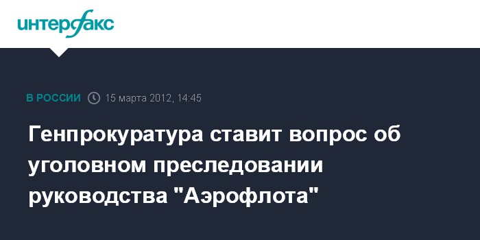 Москва. 15 марта. INTERFAX.RU - Генпрокуратура РФ направила в адрес ОАО "Аэрофлот" представление об устранении нарушений законодательства в деятельности авиакомпании и предложила ее руководству дать согласие на "осуществление действий, необходимых для уголовного преследования" коммерческого директора компании, сообщили "Интерфаксу" в четверг в Российском союзе туриндустрии (РСТ).