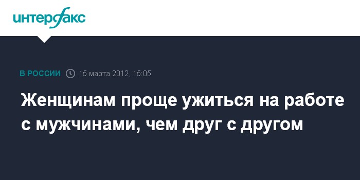 Москва. 15 марта. INTERFAX.RU - Большинству мужчин и женщин (по 96%), которые на данный момент трудятся в преимущественно мужских или женских командах, комфортнее работается в мужском коллективе, показало исследование HeadHunter, проведенное 7-14 марта среди 4690 посетителей сайта.