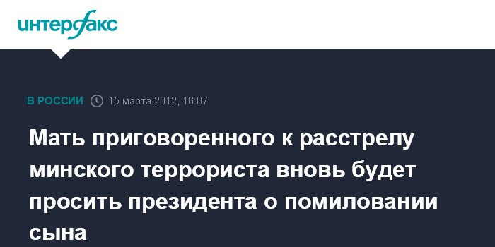 Мать приговоренного к расстрелу минского террориста вновь будет просить президента о помиловании сына