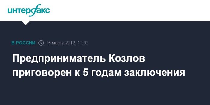 Москва. 15 марта. INTERFAX.RU - Пресненский суд Москвы приговорил к 5 годам лишения свободы бизнесмена Алексея Козлова, мужа журналистки Ольги Романовой.