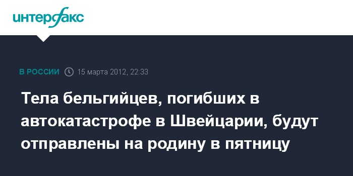 Брюссель. 15 марта. INTERFAX.RU - Тела жертв автокатастрофы в Швейцарии будут переправлены в Бельгию в пятницу, говорится в коммюнике, распространенном бельгийским правительством в четверг.