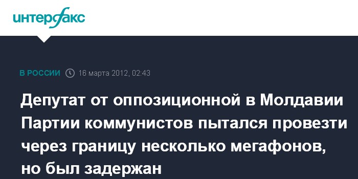 Кишинев. 16 марта. ИНТЕРФАКС - Депутат от оппозиционной в Молдавии Партии коммунистов Александр Петков пытался нелегально провезти в Молдавию с Украины партию мегафонов для использования в ходе намеченной на пятницу акции протеста, сообщила корреспонденту "Интерфакса" сотрудница Таможенной службы Алина Шаргу.