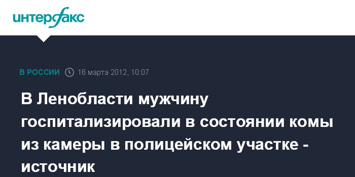 В Ленобласти мужчину госпитализировали в состоянии комы из камеры в полицейском участке - источник