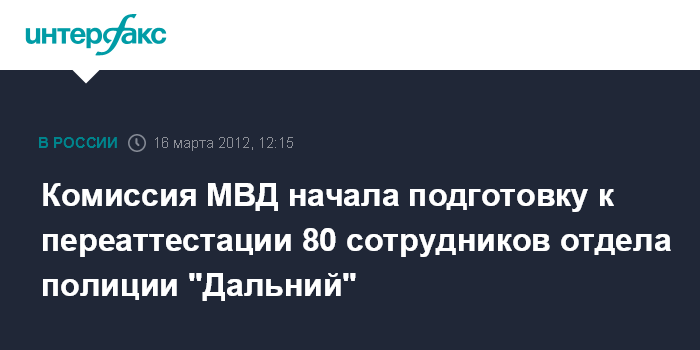 Комиссия МВД начала подготовку к переаттестации 80 сотрудников отдела полиции "Дальний"
