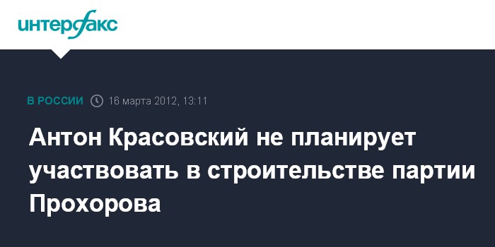 Москва. 16 марта. INTERFAX.RU - Глава предвыборного штаба Михаила Прохорова Антон Красовский не намерен участвовать в создании каких-либо политических партий.