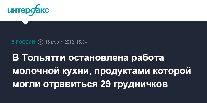 Самара. 16 марта. INTERFAX.RU - Роспотребнадзор Тольятти начал внеплановую проверку молочной кухни и всех пунктов выдачи детского питания, из-за употребления которого могли отравиться 29 грудничков.