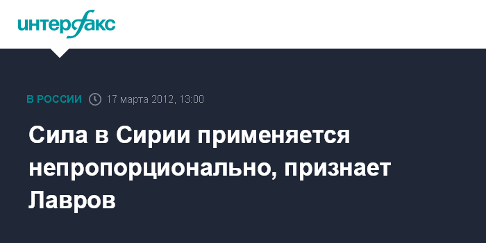 Москва. 17 марта. INTERFAX.RU - Глава МИД России Сергей Лавров заявил, что не сомневается в непропорциональности применения силы в ходе конфликта в Сирии.