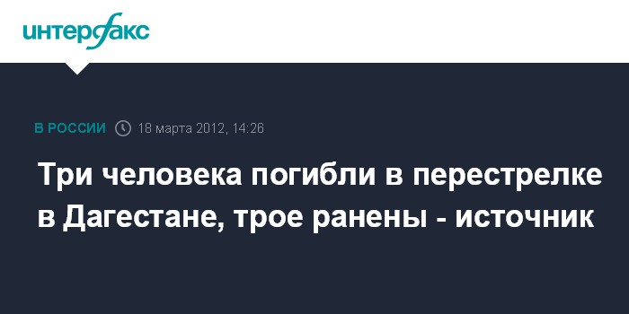 Москва. 18 марта. INTERFAX.RU - В Кизляре (Дагестан) в воскресенье днем в ходе конфликта три человека погибли, есть пострадавшие, сообщил "Интерфаксу" источник в правоохранительных органах. "На ул. Набережной в Кизляре в воскресенье днем между гражданскими людьми произошел конфликт, который перерос в перестрелку. В результате инцидента трое убиты, три человека получили ранения", - сказал источник.