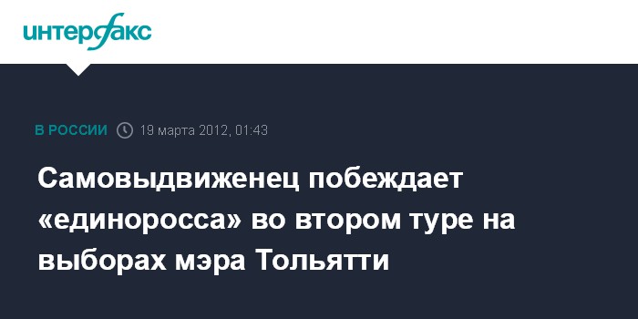 Самовыдвиженец побеждает «единоросса» во втором туре на выборах мэра Тольятти