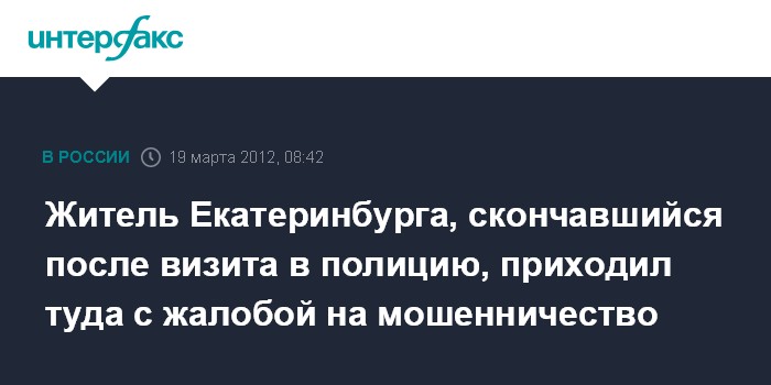 Житель Екатеринбурга, скончавшийся после визита в полицию, приходил туда с жалобой на мошенничество