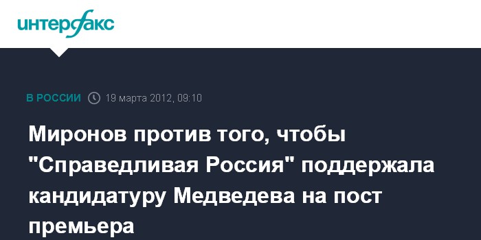 Миронов против того, чтобы "Справедливая Россия" поддержала кандидатуру Медведева на пост премьера