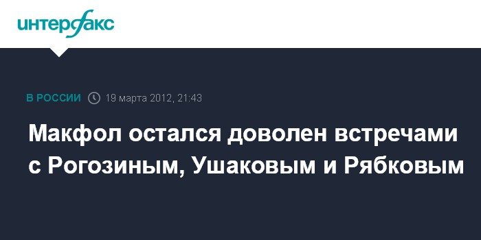 Макфол остался доволен встречами с Рогозиным, Ушаковым и Рябковым