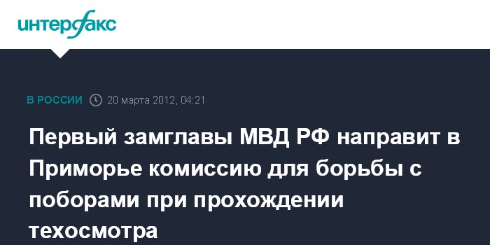 Первый замглавы МВД РФ направит в Приморье комиссию для борьбы с поборами при прохождении техосмотра