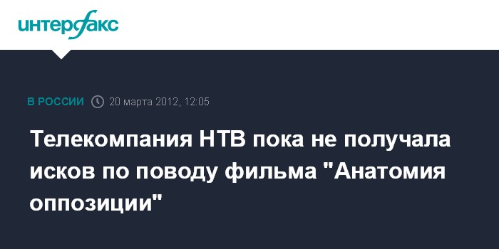 Москва. 20 марта. INTERFAX.RU - На НТВ не комментируют информацию о подаче судебных исков к телекомпании за показ фильма "Анатомия протеста".
