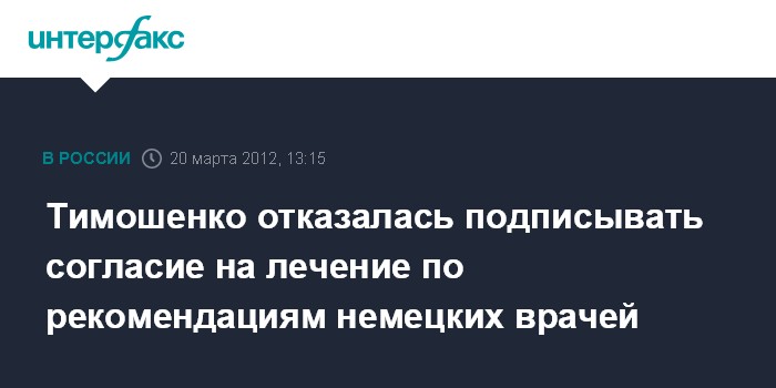 Тимошенко отказалась подписывать согласие на лечение по рекомендациям немецких врачей