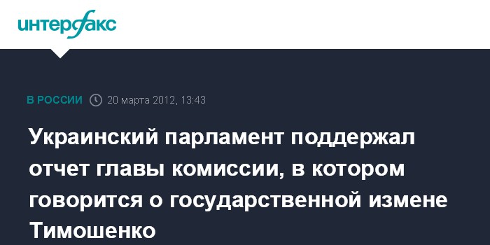Киев. 20 марта. INTERFAX.RU - Верховная Рада Украины приняла к сведению отчет временной следственной комиссии (ВСК) по вопросам расследования обстоятельств подписания газовых соглашений между НАК "Нафтогаз Украины" и ОАО "Газпром" о наличии признаков государственной измены в сфере экономической безопасности Украины.