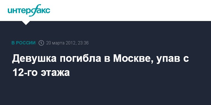 Москва. 20 марта. INTERFAX.RU - Молодая девушка погибла в результате падения с 12-го этажа на западе Москвы, сообщил "Интерфаксу" источник в правоохранительных органах.
