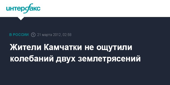 Петропавловск-Камчатский. 21 марта. ИНТЕРФАКС-ДАЛЬНИЙ ВОСТОК - Два землетрясения произошли в течение нескольких часов у восточного побережья Камчатки в среду.