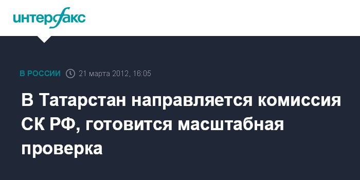 Москва. 21 марта. ИНТЕРФАКС - Комиссия Следственного комитета РФ по поручению главы ведомства проведет масштабную проверку работы следственного управления по Татарстану, сообщил официальный представитель СК РФ Владимир Маркин.